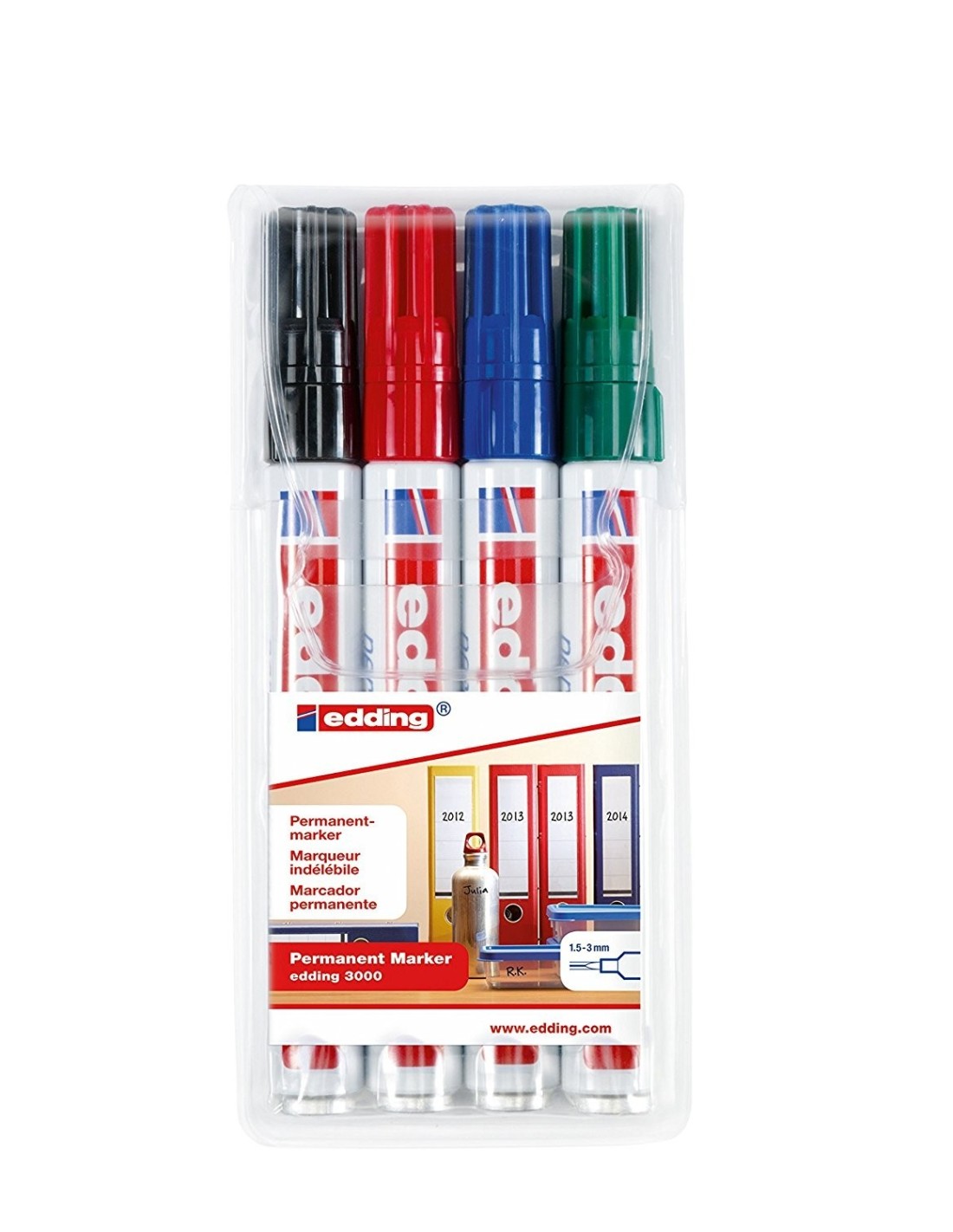 Edding 3000-4 Marcadores Permanentes uno de cada color (Azul,negro,rojo y verde)